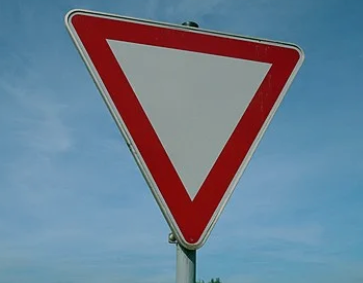 看到此标志时,车辆须减速并做好停车准备,优先其他车辆、行人驶过,并在确保安全后,方可通行。